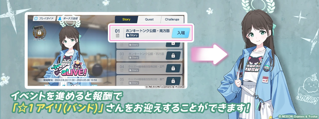 -ive aLIVE!/Rerun is the 35th event in Blue Archive that is set on Trinity featuring the members of After-School Sweets Club.