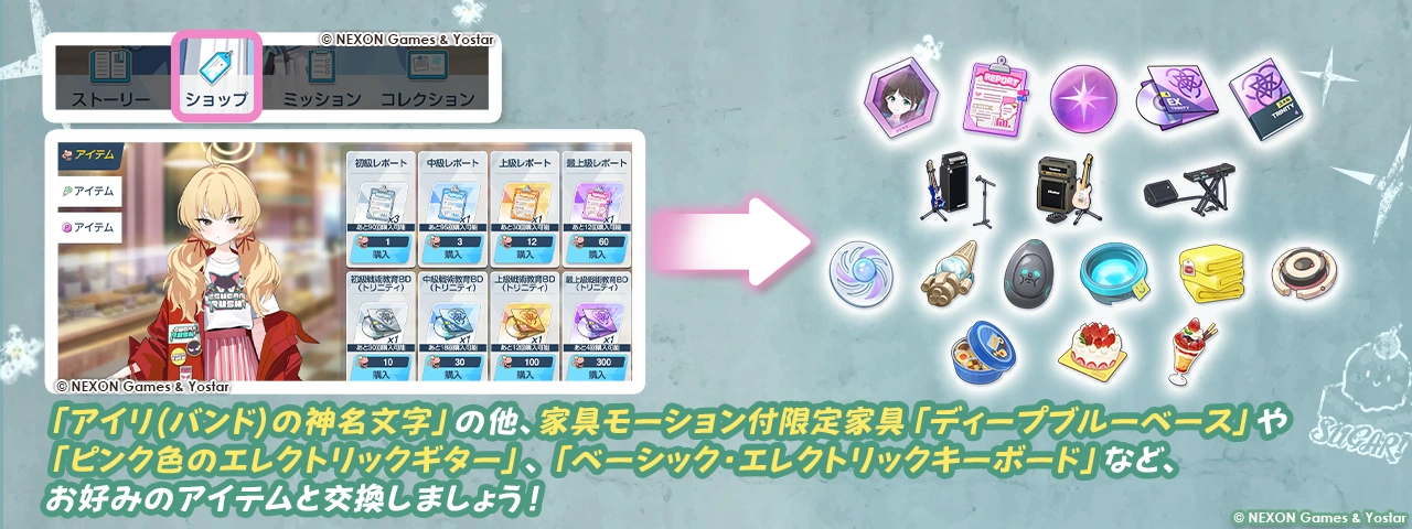 A sudden event scenario occurs when a certain number of parameter values are reached. Events that occur can be collected as a 'memory collection'. If teachers obtained the 'Legendary Recorded Edition' furniture through the 'Achievements' (Can be obtained by progressing through the mini-game), the memories can be viewed in the Cafe even after the event has ended.