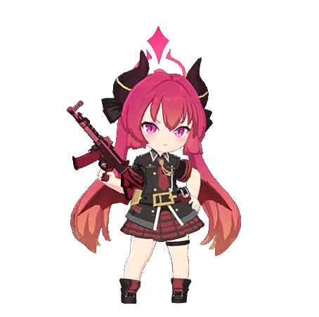 She uses a pair of red StG 44 assault rifles though she would only use one in normal combat. Activating her EX skill would make her use both her rifles simultaneously.