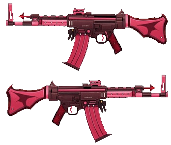 Akashi Junko uses a pair of Assault Rifles, specifically a pair of red StG 44 assault rifles.
