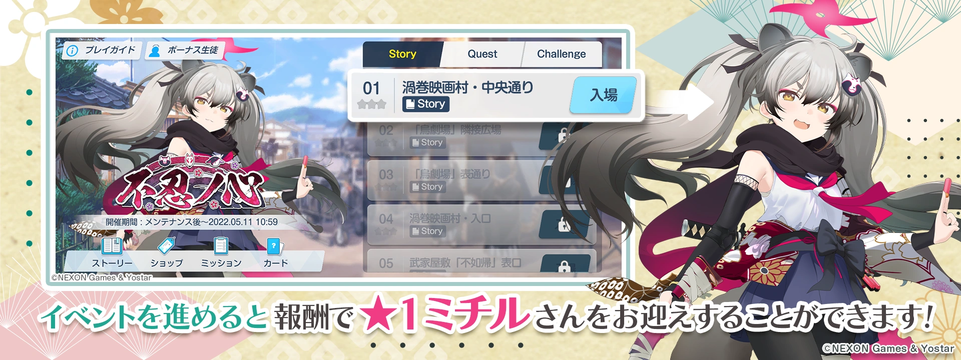 An Unconcealed Heart (不忍ノ心) is the 12th event in Blue Archive that is set on Hyakkiyako featuring the members of Ninjutsu Research Department.