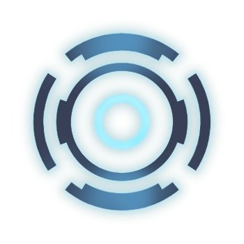 Her halo has five black outer segments with blue rims and a blue small circle inside of them.