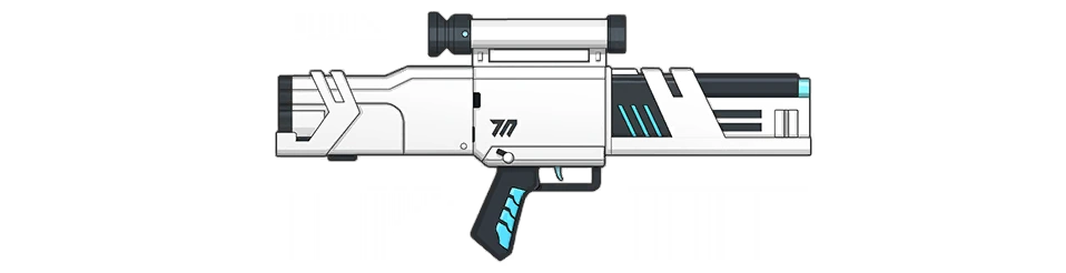 Toki uses a white HK G11 bullpup assault rifle with a black pistol grip and magazines. The Millennium insignia is stamped on the receiver.