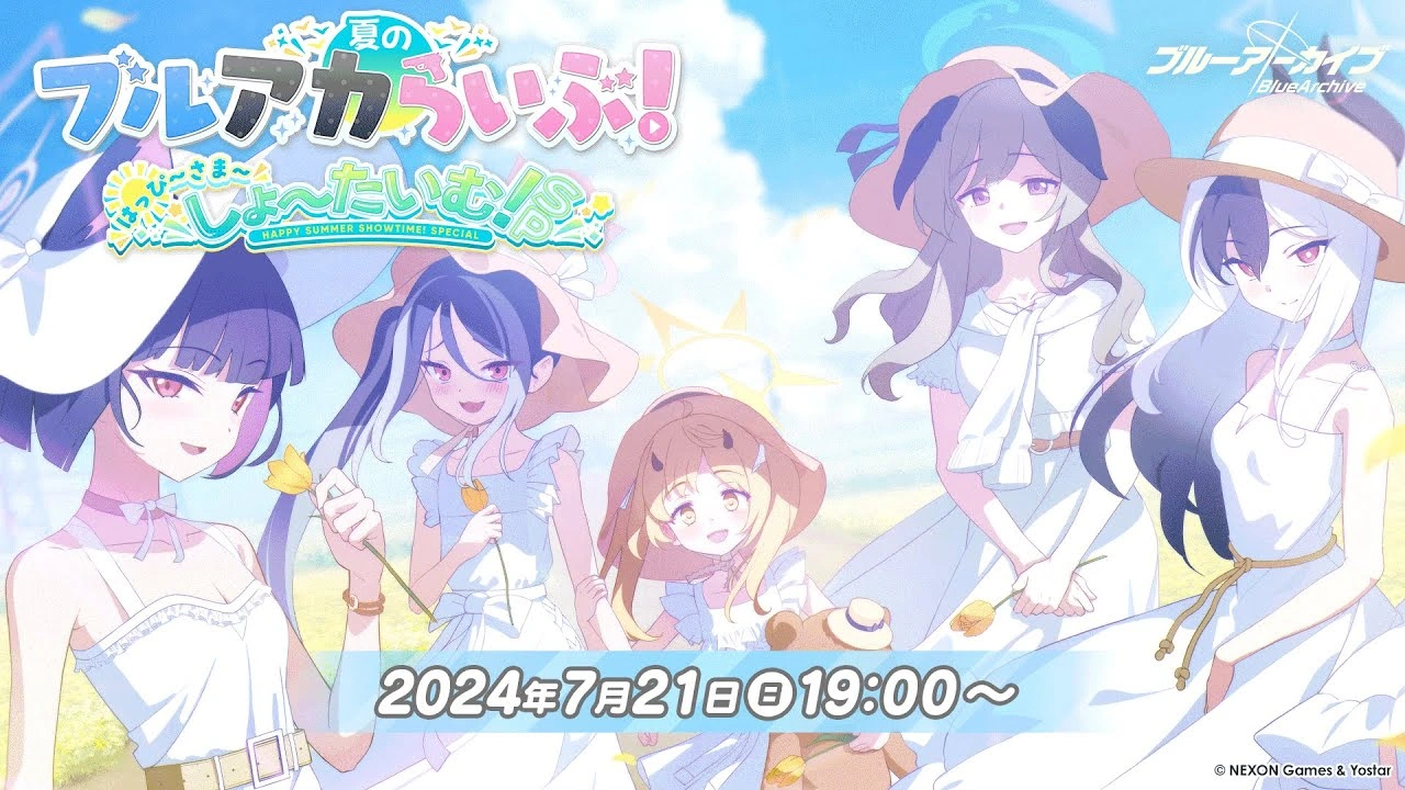 Summer Blue Archive Live! Happy Summer Showtime SP! (夏のブルアカらいぶ!はっぴ~さま~しょ~たいむ!SP,Summer Blue Archive Live! Happy Summer Showtime SP!) is the 19th livestream.