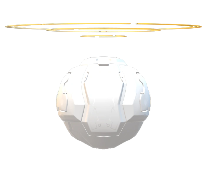Chesed is a white and round mechanical sphere with orange glowing stripe on the interior, indicating that it has heavy armor and has several black stripes on the exterior with a Decagrammaton logo and its name engraved onto it. It has one layer of protections and three layers of halo floating on top of its head.