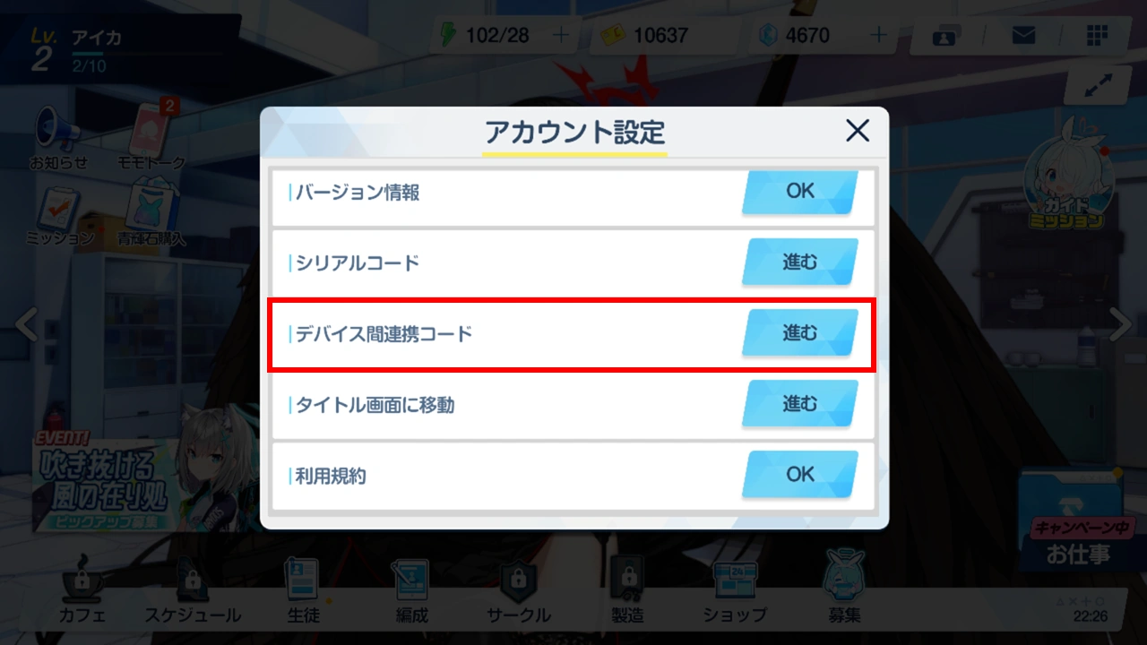 Scroll down and click on "Device Linkage Code (デバイス間連携コード)".