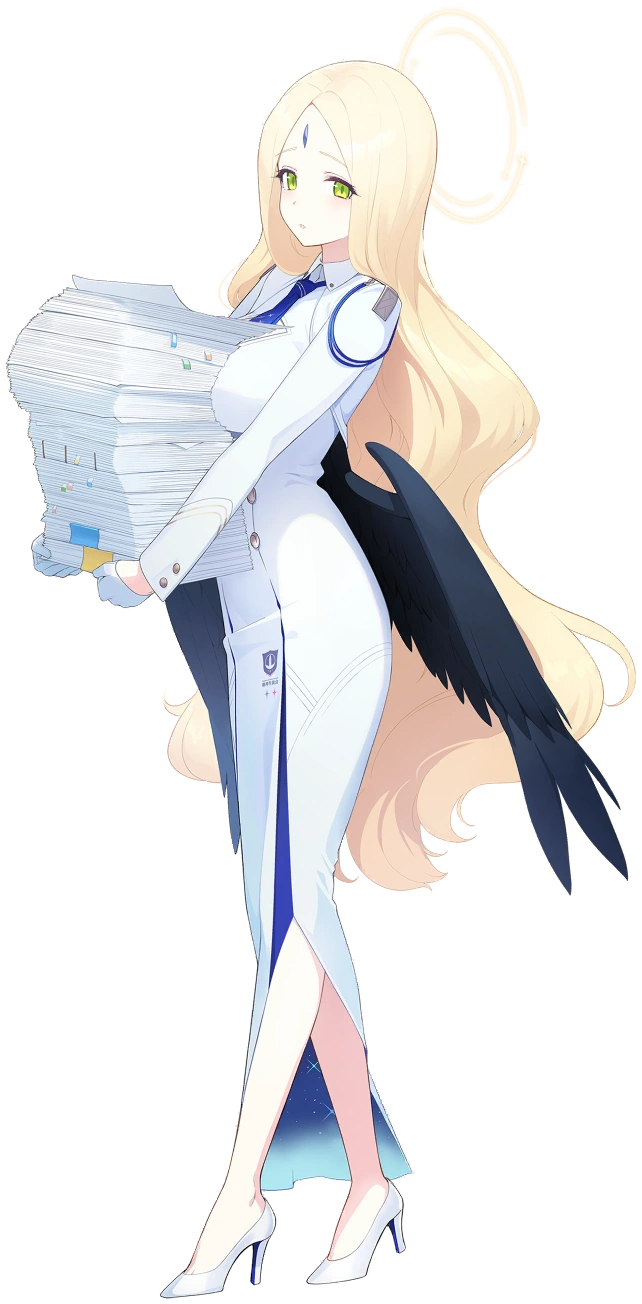 - In her official sprite, she holds a pile of documents that contorts to the shape of her body; specifically, there's a very noticeable bulge in the documents created by her breasts.