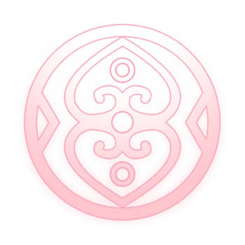 Shizuko's halo has two pastel pink hearts with circles merging together inside another circle with triangles on the sides.