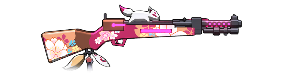 Izuna carries a Type 100 submachine gun with its entire body covered in a similar flowery patterns as her kimono, with shinobi-style accessories attached at the base of the stock.