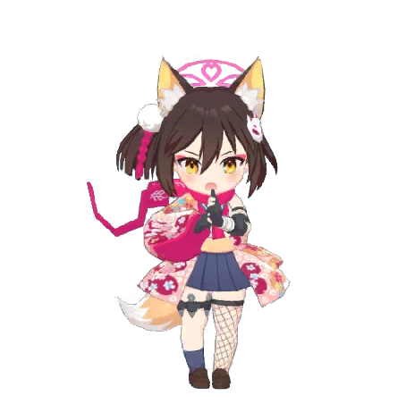 A 1st year student and member of the Ninjutsu Research Club of the Allied Hyakkiyako Academy, Izuna is a bright and bubbly girl who dreams of one day becoming "the best ninja of Kivotos". But to others, her goal seems like a pipe dream, resulting in her becoming a lone fox.