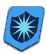 Her halo is formed by a dark red eight-sided star that fades into black upwards, with teardrop-like elements pointing inwards.