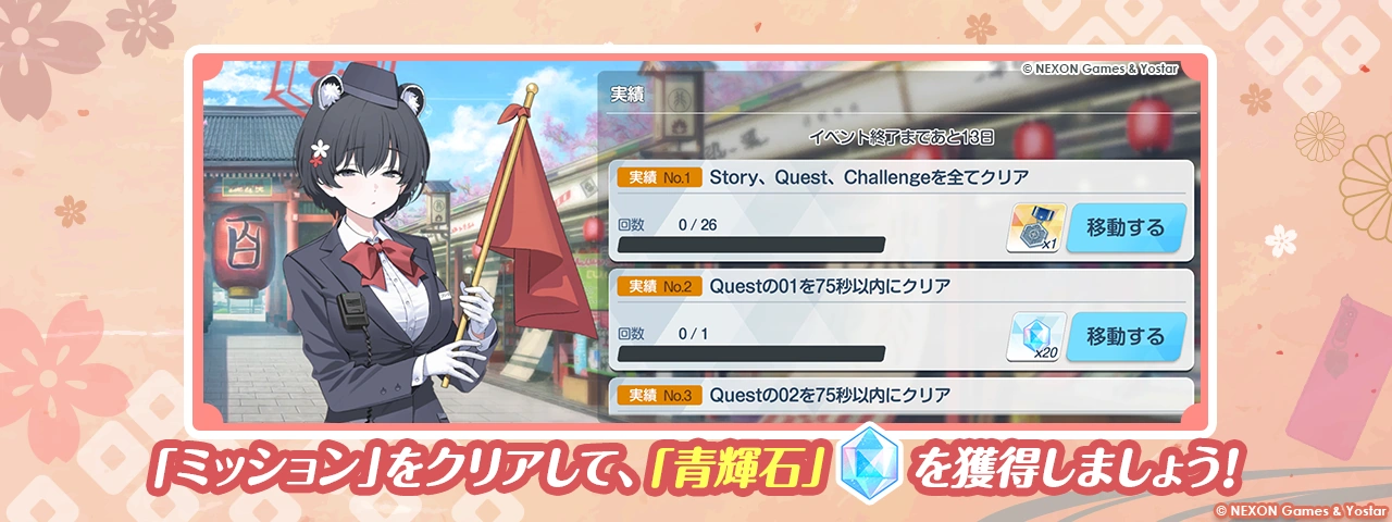 | 14 | Clear Challenge 1 of the event within 105 seconds | 105 | Guide by ブルアカ攻略 | ||