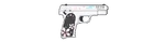 She uses a white Sugiura pistol with black grips. Cherry blossom decals pepper the grip and the slide. The Hyakkiyako insignia is imprinted on the slide just behind the muzzle.