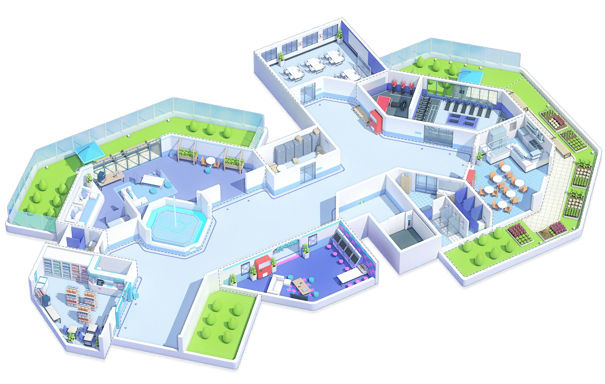 This is a fitness center where you can relax and work out after a long day of research.