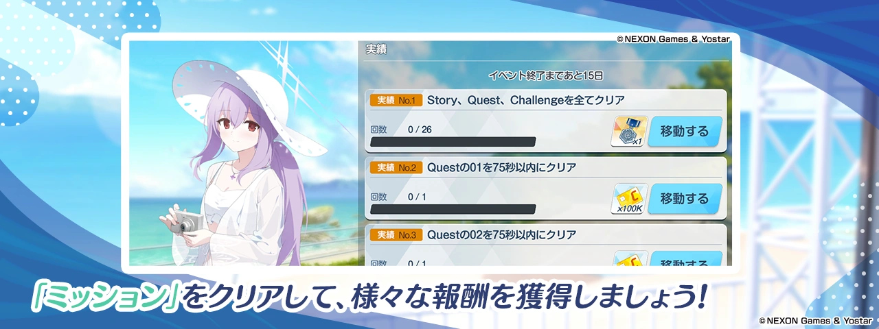 | 15 | Clear Challenge 2 of the event within 100 seconds | 100 | Guide by ブルアカ攻略 | ||