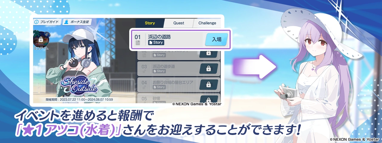 Sheside Outside (「Sheside Outside」) is the 37th event in Blue Archive that is set on x featuring the members of Arius Squad.