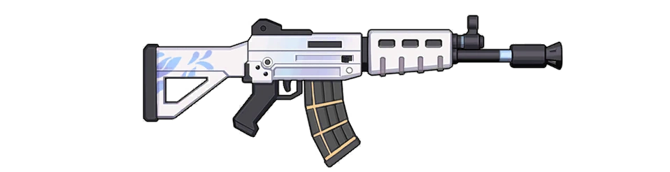 She uses a white QBZ-03 with a black grip and blue flower pattern decals on the stock.