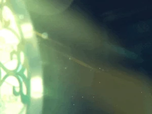 Hinata's halo have a yellow color and it have two little wings and a lot of small lines interacting the halo.