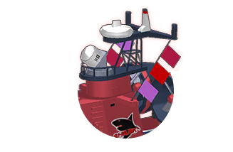 In phase 2, Wakamo will dispatch and command a white hovercraft with two lifesaver lifebuoys and a preventive boats each side. Its back has 2 big fans, and its front is armed with various weapons. A Dolphin mark can be seen, with a helicopter-like structure at its top. From Insane difficulty on, the overall color of the hovercraft will be turn to red.