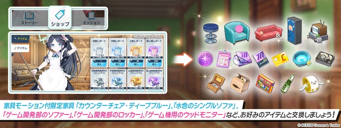 | “ | We have many powerful items in stock for exchange! But since it is you, Sensei... I think you could just have all of them! | ” |